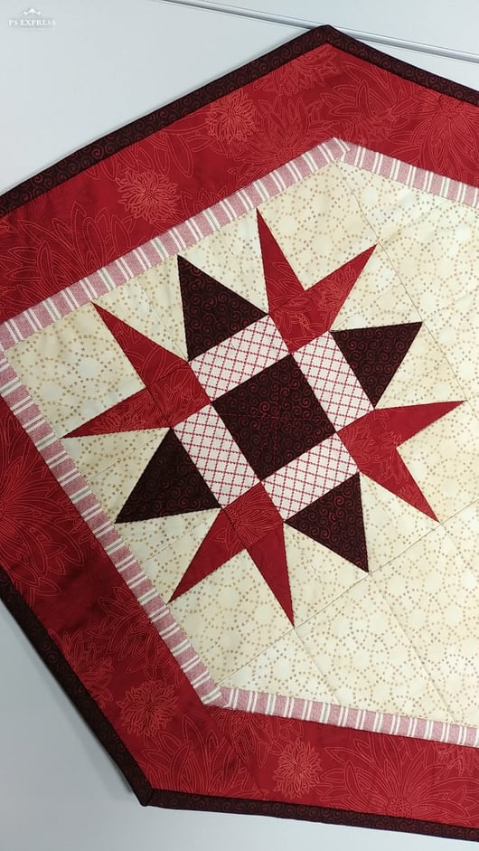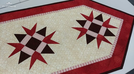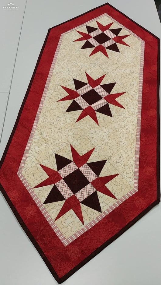 Und dann möchte ich euch auch noch meinen neuen Tischläufer vorstellen. Gearbeitet habe ich wieder mit den tollen Blocloc-Linealen. Hier habe ich den Block verwendet, den ich euch im letzten Post vorgestellt habe, den "Dervish Star".