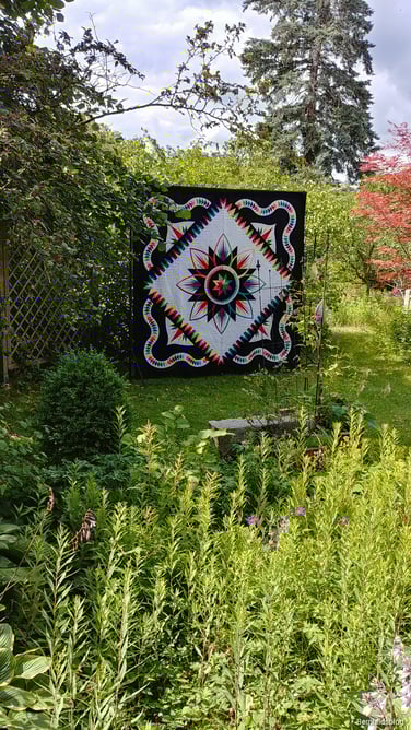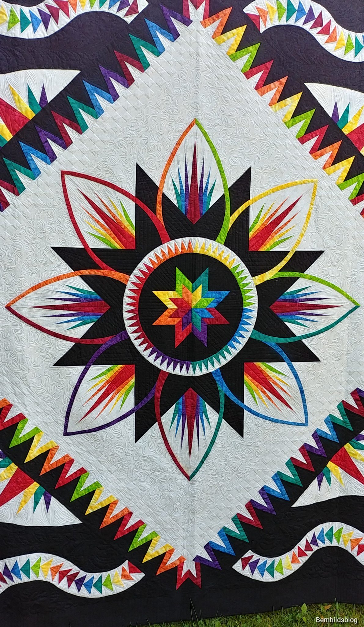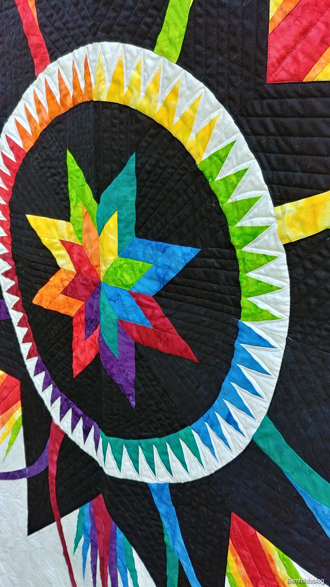 Wieder eine fantastische Anleitung von Judy Niemeyer, die diesen faszinierenden Quilt in herrlichen Regenbogenfarben entworfen hat. Ihre einzigartigen Techniken begeistern mich immer wieder und selbst das Nähen eines so großen Quilts (er ist immerhin 99" x 99", also 2,5 m x 2,5 m groß) wird dadurch zu einer lösbaren Aufgabe. Vor kurzem habe ich ihn in Köln bei Romy Bügers abholen können und ihr Quilting ist wieder einmal wundervoll geworden. Der "Mooncatcher" ist einfach etwas Einmaliges!! Und von der Limited Edition (nur 500 Anleitungen weltweit) haben wir uns gleich 20 Stück gesichert.