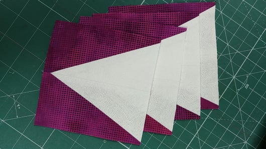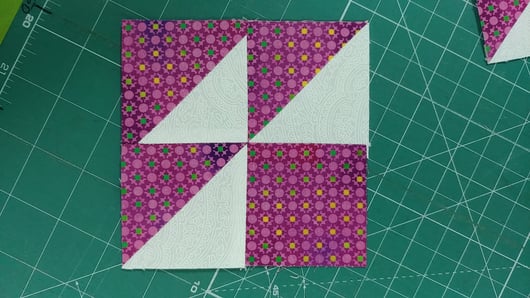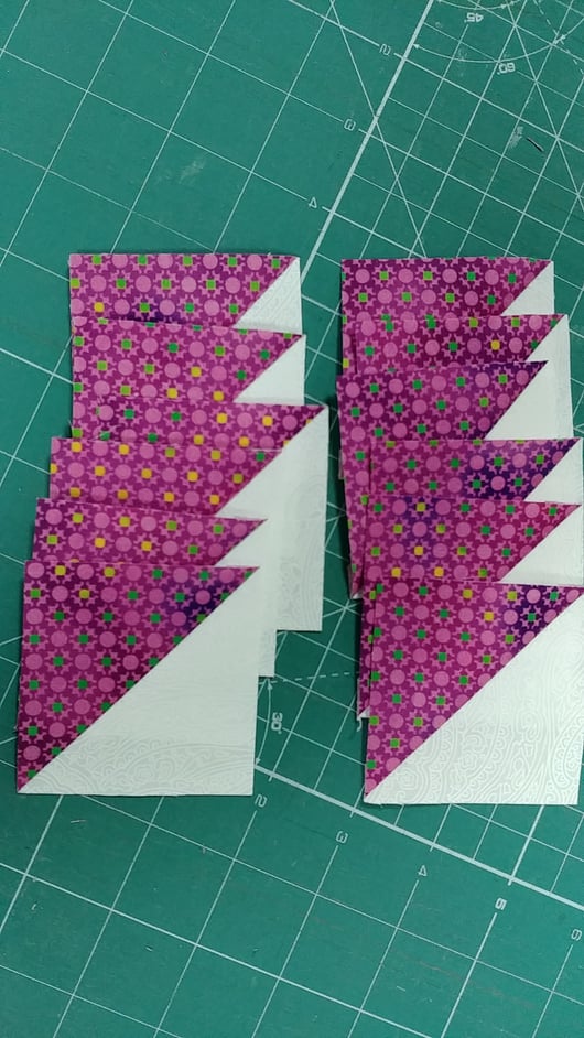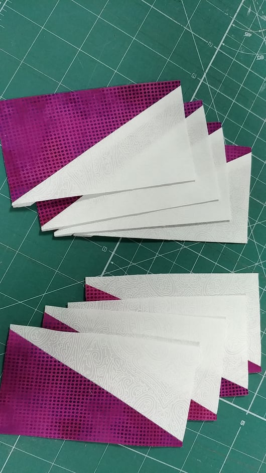 Als nächstes folgen die Half Square Triangles (HST), ihr kennt sie vielleicht auch als "Halbquadratdreiecke".