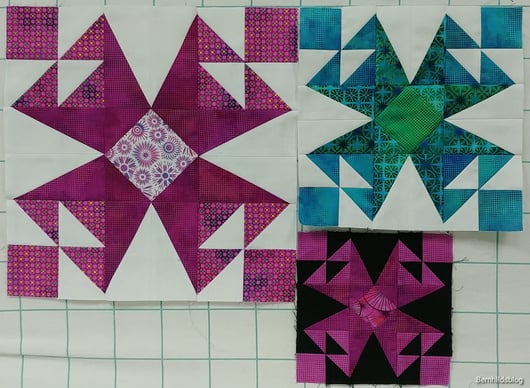Die Half Rectangle Triangle (HRT) werden in der bereits bekannten Art und Weise unter Zuhilfenahme der Half Rectangle Triangle-Lineale von BlocLoc gearbeitet.