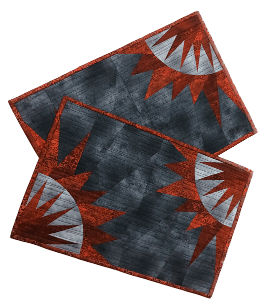 den folgenden Tischläufer. Zu beiden Läufern gibt es zu den Materialpackungen Kurzanleitungen mit Zuschneidemaßen.