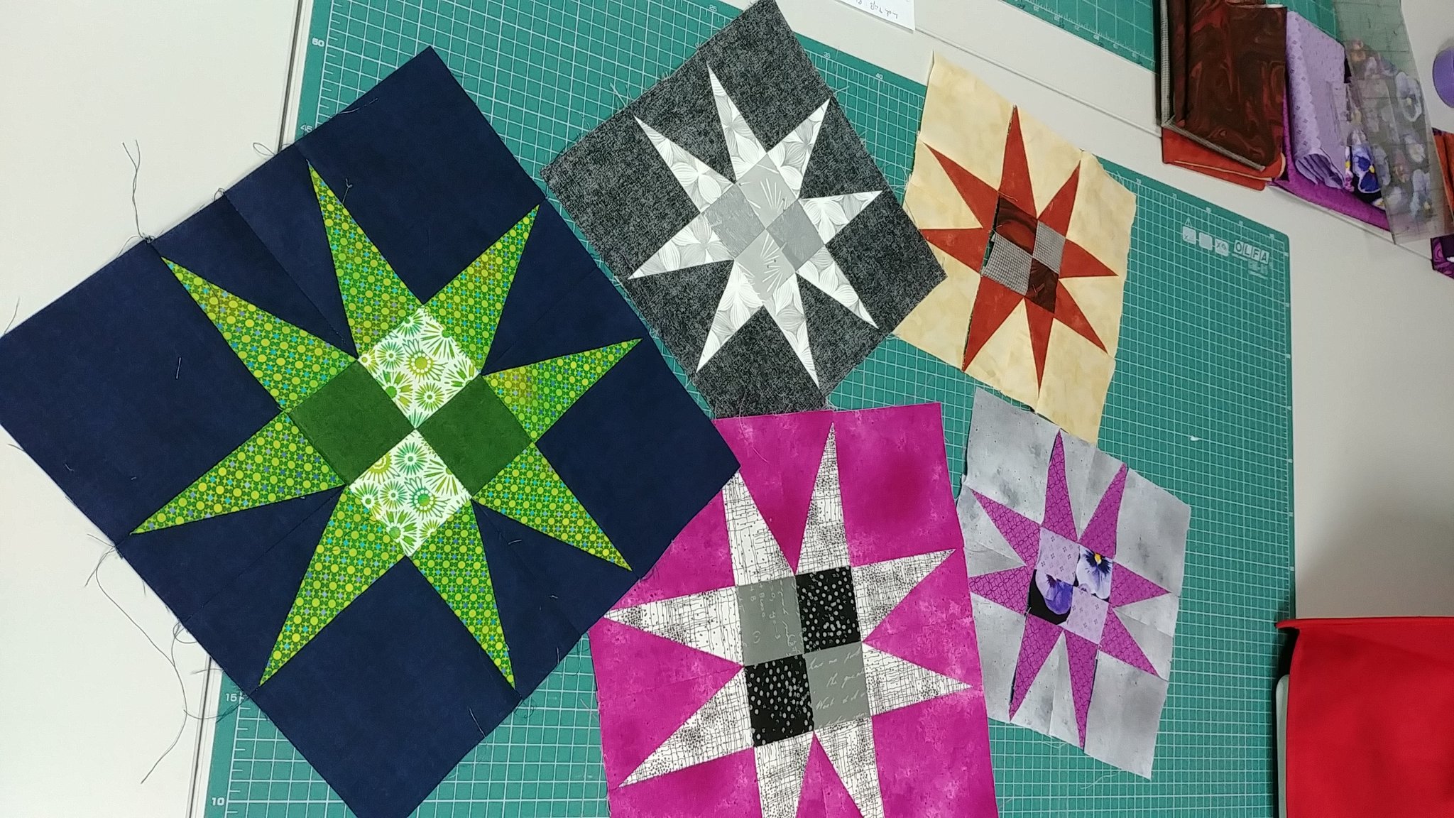 In meinen Kursen, die hier vor Ort monatlich mit festen Gruppen stattfinden, haben schon etliche Teilnehmerinnen die ersten Blöcke genäht und so kann ich euch noch viele zusätzliche Beispiele zeigen.